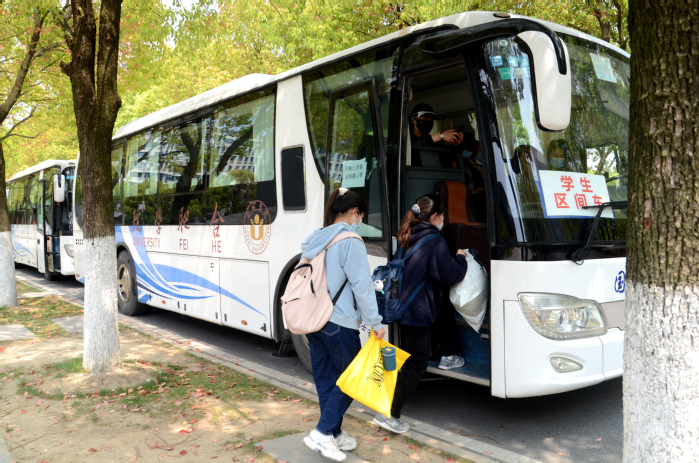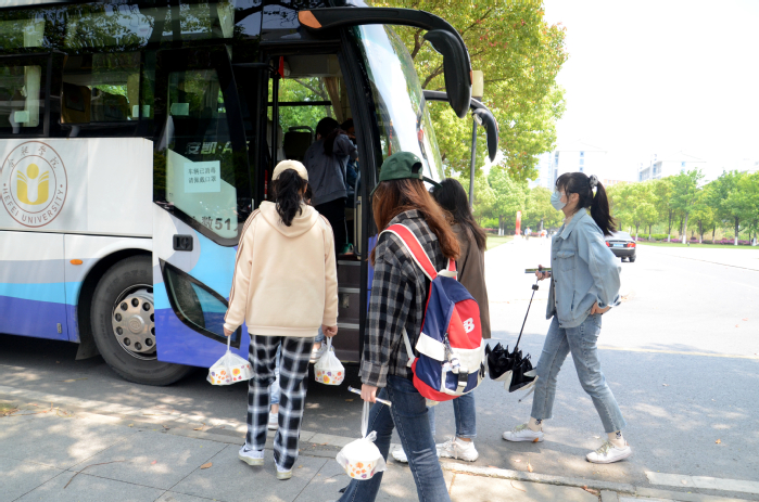 真情護送,有他們一路相伴。“師傅,你吃飯了嗎?”“我自己帶了飯,已經在車上吃好,這樣既省時間,又不耽誤你們。” 像這樣暖心的對話時常在擺渡車上發生。而提到擺渡車,同學們似乎都有著說不完的話。19級中德物流專業的黃典誠這樣說:“擺渡車的開設有效解決了封校后兩校區同學們的往來問題,讓已然無法見面的同學們又重新架起了溝通的橋梁,實現了從‘線上’到‘線下’的轉變。”言談之中,同學們的臉上都洋溢著喜悅,這不僅是對擺渡車的肯定,更是對學校疫情防控工作的認可。