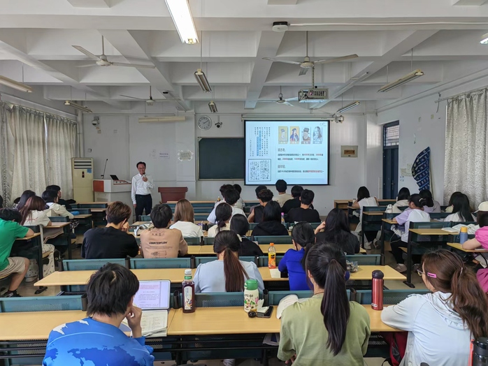 吳功福帶領學生系統回顧了習近平生態文明思想的形成過程,深入解讀了核心要義和實踐要求。吳功福通過理論聯系實際,采取聲畫結合、案例融入、師生互動等方式,輔之以豐富的圖片、視頻等背景素材,生動講述了合肥市牢記習近平總書記殷殷囑托,堅持綠色發展理念,聚力將巢湖打造成“合肥最好名片”的實踐與成效,受到學生們的熱烈歡迎。