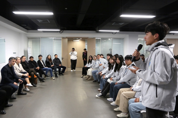 代表團參觀了新能源汽車之旅E-Motion Room、精益培訓中心以及智能制造產教融合實訓中心,深入了解了大眾學院教學及行業培訓的創新模式。代表團一行與2024 級全體學生及部分 2023 級學生展開了親切交流。學生們踴躍發言,積極分享所學所感,對話中滿是對投身于未來移動出行產業的熱切向往。