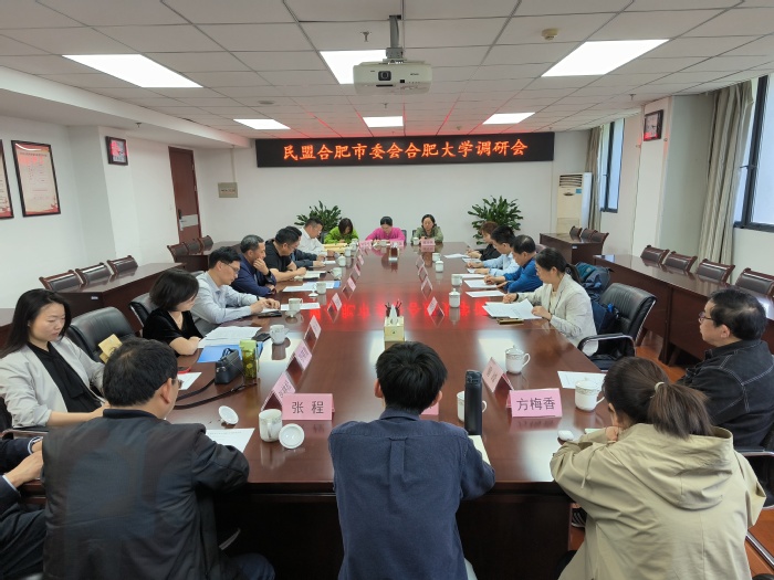 4月15日,民盟合肥市委主委倪懷瑋、副主委胡平、秘書長(zhǎng)張甦及組織部長(zhǎng)朱蔚華來校開展工作調(diào)研。會(huì)前,校黨委副書記周飛親切會(huì)見了調(diào)研組一行。黨委委員、黨委宣傳統(tǒng)戰(zhàn)部部長(zhǎng)賈峰,民盟合肥大學(xué)總支主委謝進(jìn)、總支委員及新盟員代表參加座談會(huì)。