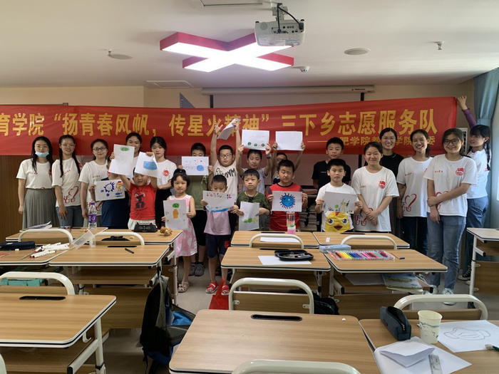 炎炎夏日,教育學院“三下鄉”社會實踐志愿服務隊本著回報社會、服務社會的宗旨,以促進兒童全面發展為目標,在合肥濱湖和園社區開展義務支教專業實踐活動。志愿者們立足自身專業學習實踐,結合社區需求,為社區兒童開展了書法、朗讀、美術和手工等第二課堂義務支教,大大激發了孩子們的學習動力,開闊了孩子們的視野,給他們帶來了一個豐富多彩的暑期生活。此外,志愿者還結合當地實際情況開展了暑期安全教育課程,包括防疫防汛小知識、暑期防溺水、安全用電等主題教育,強化兒童暑期安全意識。志愿者們在實踐中真正體會到作為一名教師的責任和擔當,深入了解了孩子們的身心發展特點,為今后的職業規劃和發展奠定了基礎。同學們表示要更加認真努力地教書育人,用愛心陪伴孩子們成長,在他們的心中播種下夢想的種子。