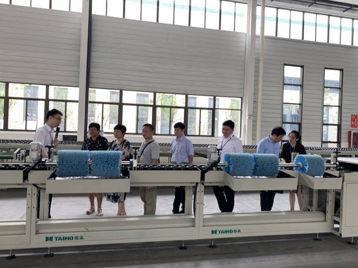 我校一行人先后參觀了公司在智能檢測分選設(shè)備、智能化倉儲系統(tǒng)、工業(yè)機(jī)器人等產(chǎn)品的生產(chǎn)制造及設(shè)備的現(xiàn)場演示,并認(rèn)真聽取了公司自成立以來的發(fā)展歷程、市場銷售情況以及科技研發(fā)等方面情況。