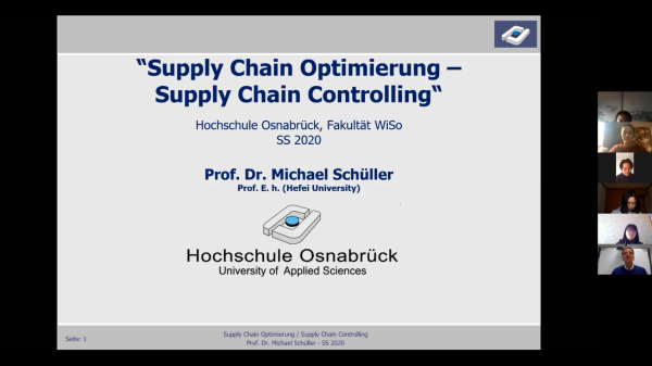 3月9日星期一,德國時間早上7點50分,中國時間下午14點50分,經濟與管理學院的同學們在各自家中的書桌前,滿懷期待地點開了軟件Zoom,陸續登陸進入由中方助課教師注冊主持的遠程直播教室,做好聽課準備。此時,在距離中國合肥一萬多公里外的德國奧斯納布呂克應用科學大學,物流管理(中外合作)德方項目負責人舒勒教授也進入直播教室,完成課件共享和課程直播的最后調試工作。德國時間早上8點整,中國時間下午15點整,2017級物流管理(中外合作)2020年春季學期準時在“云端”開課。