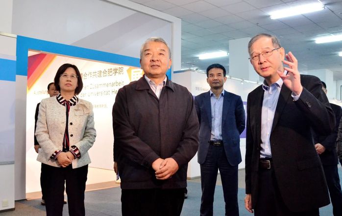 在參觀中德共建合肥學院30周年成果展的過程中,王其東介紹了我校的基本情況,我校始終堅持“地方性、應用型、國際化”的辦學定位,近些年大力開展教育改革,對標地方產業發展需求,加強校企合作,深入推進產教融合,實現產學研合作育人,培養應用型人才,服務地方經濟社會發展。同時廣泛開展國際合作,探索“雙元制”人才培養模式,不斷提高人才培養質量,構建起具有鮮明特色的應用型人才培養體系。