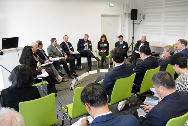 在11月12日研討會開幕式上,中國駐漢堡總領事孫從彬先生,安徽省教育廳副巡視員周元先生,下薩克森州科文部高等教育司司長米勒恩邁爾先生,奧斯納布呂克市副市長科勒斯女士,德國大學校長聯席會議(HRK)副主席、奧斯納布呂克應用科學大學校長拜爾特拉姆教授、合肥學院黨委書記蔡敬民教授分別致辭。來自中國20所高校和企業代表與德國14所高校和企業行會代表共100余人出席會議并圍繞“校企協同創新,推動地方發展”這一會議主題進行了座談。在接下來的分組討論中,與會者分別就校企在教研、科研領域的成功合作經驗及其在推動地方經濟文化發展中的積極作用,進行了介紹和展望。作為具有典型德國特色且備受與會者關注的“雙元制高等教育”這一主題,德國與會者通過報告和討論的形式作了詳細的闡述,我校也就即將與德國合作院校及企業開展的該領域國際合作工作進行了方案分享,再次展現了我校在此應用型高等教育嶄新合作領域的引領角色。
