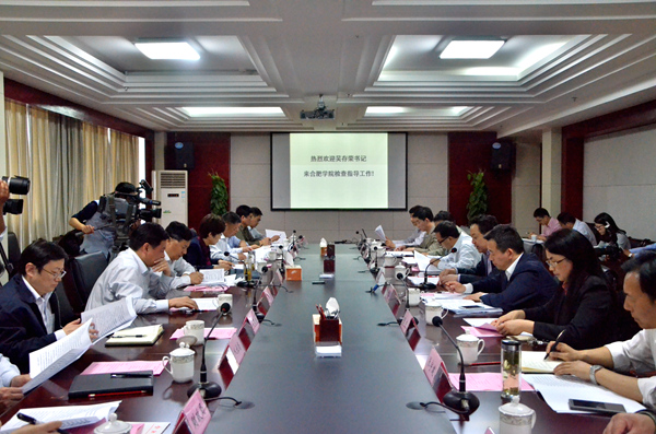 Am 14.04.2016 besuchte Wu Cunrong die Universit?t Hefei. Das Mitglied des st?ndigen Ausschusses der Provinz Anhui und Parteisekret?r der Stadt Hefei kam zur Untersuchung der Modelleinrichtung der Bildungskooperation zwischen China und Deutschland. Zun?chst begrü?te er die Studierenden und Lehrkr?fte der Universit?t und hielt dann eine Besprechung ab. Dabei erw?hnte er, dass sich die Universit?t gut entwickle und damit vom chinesischen Ministerpr?sidenten Li Keqiang hoch gesch?tzt werde. Die Universit?t Hefei sei nicht nur eine Hochschule, der das Bildungsministerium seine Aufmerksamkeit schenke und die stark vom Bildungsministerium gef?rdert werde, sondern auch ein stadtbildpr?gendes Wahrzeichen. Darüber hinaus betonte er, dass sich die Universit?t in einer entscheidenden Lage befinde. Darum sei es erforderlich, das vom Staatsrat der Volksrepublik China und der Regierung der Provinz Anhui verfolgte Hochschulkonzept durchzusetzen, internationale Perspektiven zu entwickeln, die Denkweise zu verbessern, an Reform und Innovation festzuhalten, Entwicklungschancen zu ergreifen und somit die Entwicklung der Universit?t Hefei weiterhin aktiv voranzutreiben. Um einen neuen und gr??eren Beitrag zur lokalen wirtschaftlichen und gesellschaftlichen Entwicklung zu leisten, müsse die Modelleinrichtung der Bildungskooperation zwischen China und Deutschlandund eine lokale anwendungsorientierte Hochschule mit hohem Niveau dringend weiter aufgebaut werden. Neben Wu Cunrong nahmen Ling Yun, stellvertretende Parteisekret?rin der Stadt Hefei, sowie Wei Yi, Mitglied des st?ndigen Ausschusses der Stadt Hefei und Generalsekret?r der Stadt Hefei, an der Besprechung teil. Ling hielt ebenfalls eine Rede.