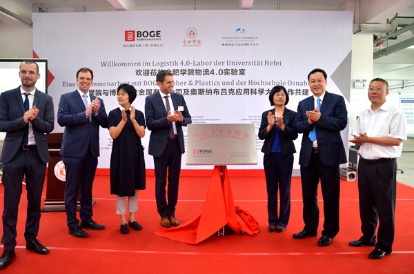 Bei der Er?ffnungszeremonie blickte Herr Prof. Dr. Cai Jingmin auf die Kooperationen zwischen der Hochschule Osnabrück und der Universit?t Hefei in den Bereichen Austausch von Studierenden und Lehrkr?ften, wissenschaftlicher Zusammenarbeit, Ausbildung der Lehrkr?fte und Zusammenarbeit in den internationalen Konferenzen zurück. Der von der Hochschule Osnabrück und der Universit?t Hefei gemeinsam gegründete Studiengang ?LOGinChina“, war das erste mit einer ausl?ndischen Hochschule kooperierende Studienprogramm der Provinz Anhui. Mit der Gründung des LOGinCHINA Logistik 4.0-Labors wird die Zusammenarbeit zwischen Hochschulen und Unternehmen vertieft und gleichzeitig den Studierenden Praxiserfahrungen geboten.