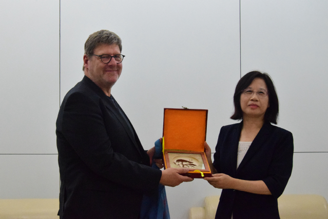 Die Pr?sidentin der Hefei-Universit?t Frau Wu Chunmei empfing die G?ste im VIP-Besprechungsraum in der Bibliothek. Sie wurden von der stellvertretenden Pr?sidentin Frau Chen Xiu und dem jeweiligen Leiter der Abteilung für internationale Austauschkooperation und vom Volkswagen-Institut. Beide Seiten konnten sich über die St?rkung der bilateralen Zusammenarbeit sowie den Aufbau von Volkswagen-Institut verst?ndigen.