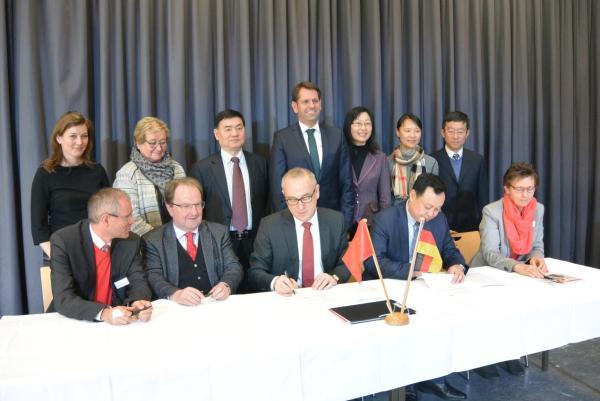 Dabei hie? Prof. Dr.-Ing. Manfred Weisensee,Pr?sident der Jade Hochschule zuerst die chinesische Delegation willkommen und ?u?erte zudem die Zufriedenheit mit der bestehenden Kooperation sowie die Hoffnung, die er in die zukünftige Zusammenarbeit setzt. Olaf Lies, der Wirtschaftsminister des Landes Niedersachsen sprach sich für mehr wirtschaftliche und kulturelle Zusammenarbeit auf Basis der Bildungskooperation aus. Bürgermeisterin Ursula Glaser gratulierte in ihrer Rede zun?chst zum 25-j?hrigen Jubil?um zwischen den beiden Hochschulen und hoffte auf mehr Austauschstudenten in der Zukunft. Auch der Parteisekret?r der Universit?t Hefei, Prof. Dr. Cai Jingmin freute sich über den Erfolg der Zusammenarbeit und erl?uterte, dass die Universit?t Hefei gro?en Wert auf die Kooperation mit der Jade Hochschule lege und er sich noch mehr Erfolg in den n?chsten 25 Jahren wünsche. Auf der Jubil?umsfeier unterzeichneten Prof. Dr. Cai und Prof. Dr.-Ing. Weisensee einen neuen Kooperationsvertrag und beteiligten sich dann an der Er?ffnungsfeier des Vereins der Alumni der Universit?t Hefei in Deutschland e.V..