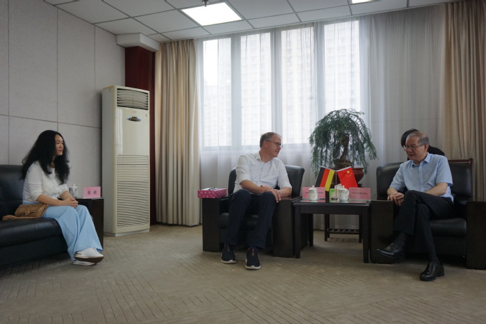 王其東首先對來校工作與訪問的兩位教授及家屬表示熱烈歡迎,簡要介紹學校在大學更名后的各項事業發展,期待在未來發展中繼續得到兩位教授的支持,把施特拉爾松德孔子學院與中外合作辦學專業兩個中德教育合作品牌做大做強。
