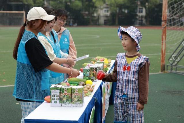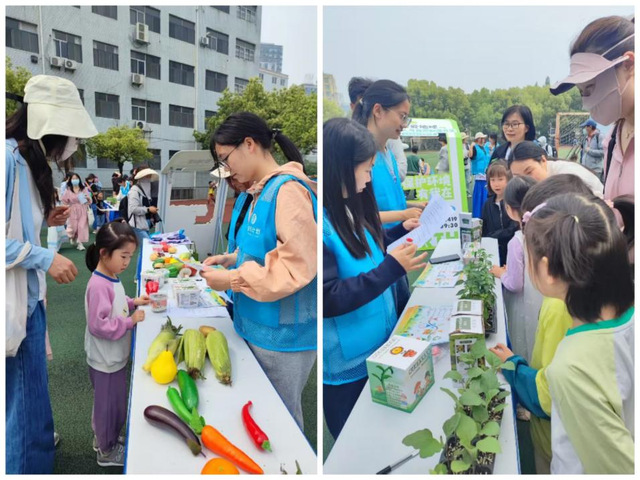 親子互動的“蔬果奧運會” 熱鬧非凡,南瓜保齡球、玉米接力賽等項目,讓家長與孩子攜手在歡樂中競技,獲勝者可兌換環保小禮物,既增進了親子關系,又激發了大家參與環保的熱情。“舊物大變身” 區域,學生黨員帶領大家將舊衣服改造成帆布袋、編織地墊,讓廢舊物品煥發新生,生動詮釋了循環利用的環保理念。