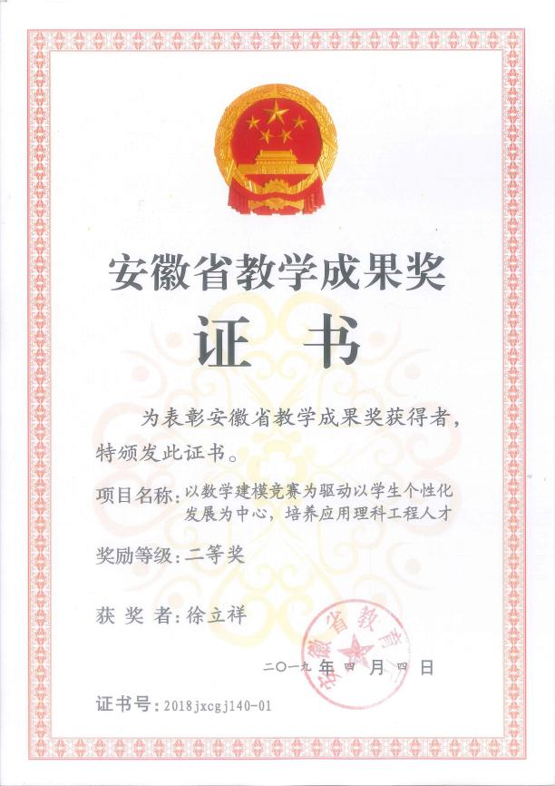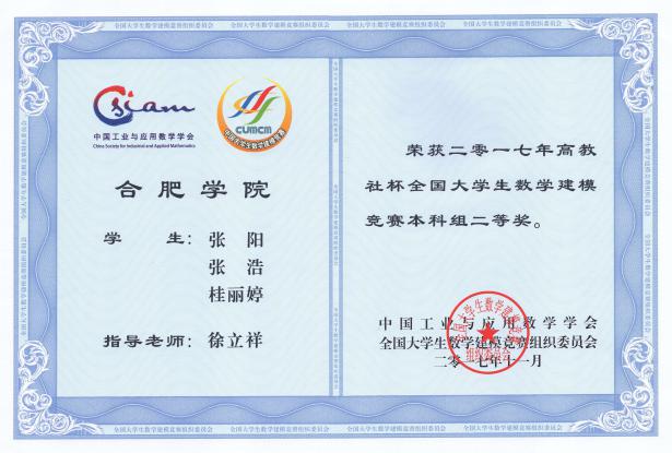合肥學院大學生數學建模競賽,在徐立祥、李旭、江立輝、李寧等老師的指導下,在各屆參賽全體大學生的共同努力下,成績斐然,多次獲得國家級和國際級獎。人工智能與大數據學院徐立祥老師擔任我校大學生數學建模競賽負責人。