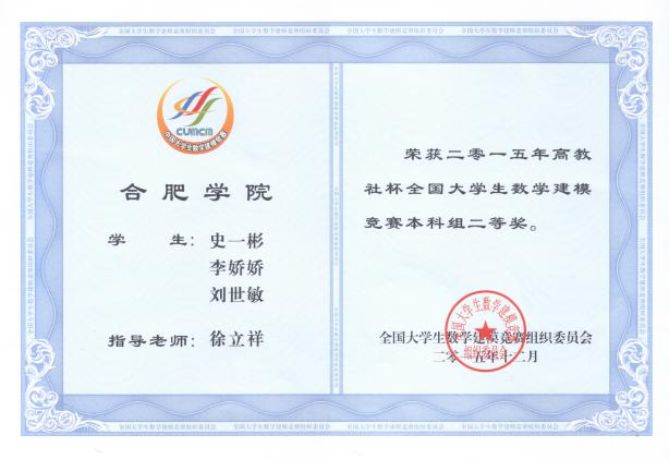 【近幾年合肥學院學子全國大學生數學建模競賽獲獎名單(省一以上獎項名單)】