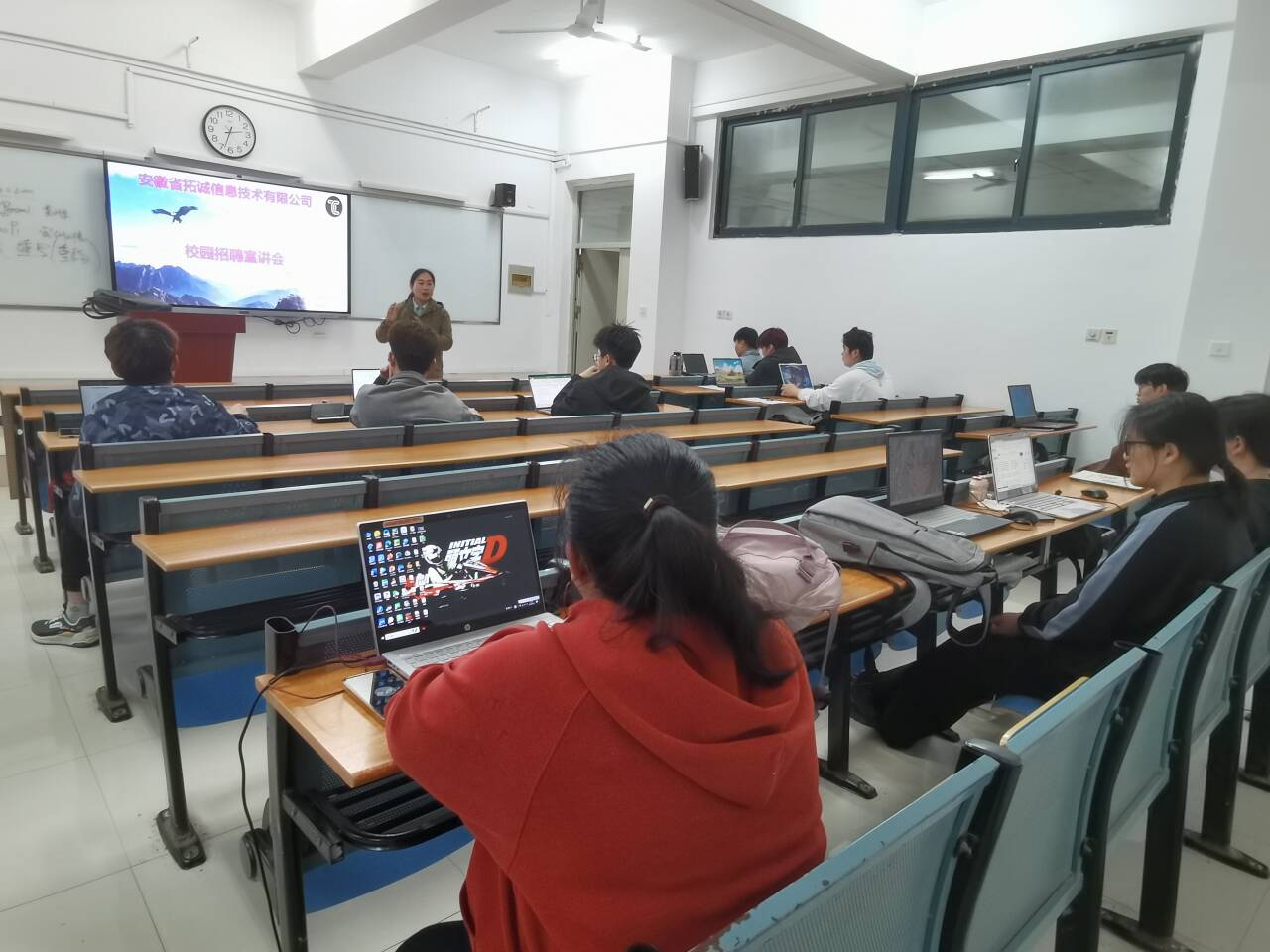 4月 19日下午,安徽拓誠科技有限公司在合肥大學36棟204教室舉行了校園招聘活動,眾多合肥大學的在校大學生踴躍參與。