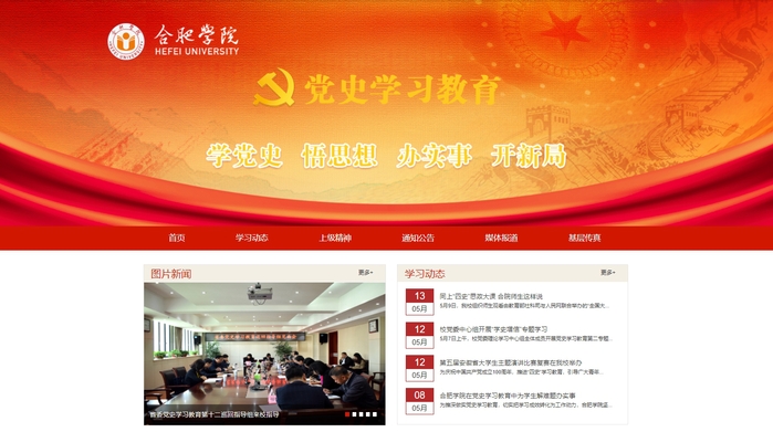 4月23日,合肥學院黨史學習教育專題網站正式上線,網站設置“學習動態”“上級精神”“通知公告”“媒體報道”“基層傳真” 5個子欄目,集部署、學習、通知、報道等功能于一體。