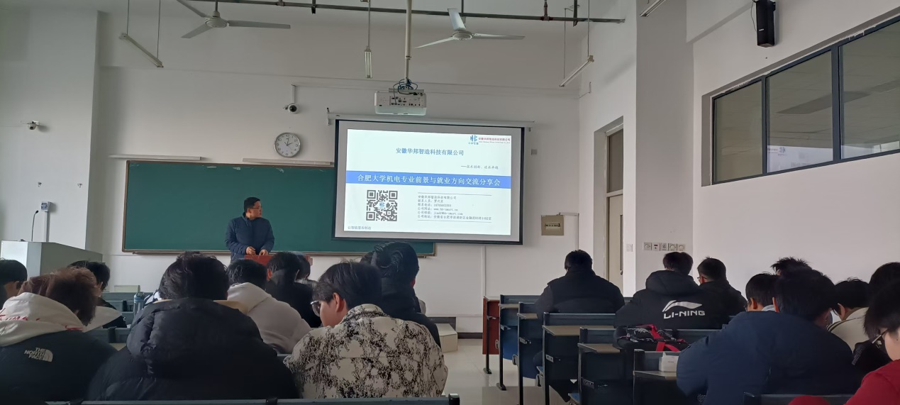 12日,35棟教學(xué)樓401教室洋溢著青春的活力與朝氣蓬勃的氣息,我校優(yōu)秀校友安徽華邦智造科技有限公司總經(jīng)理賈代發(fā)受邀前來為2024級機(jī)械系機(jī)電專業(yè)學(xué)生開展一場熱情而又生動的專業(yè)認(rèn)知提升報(bào)告