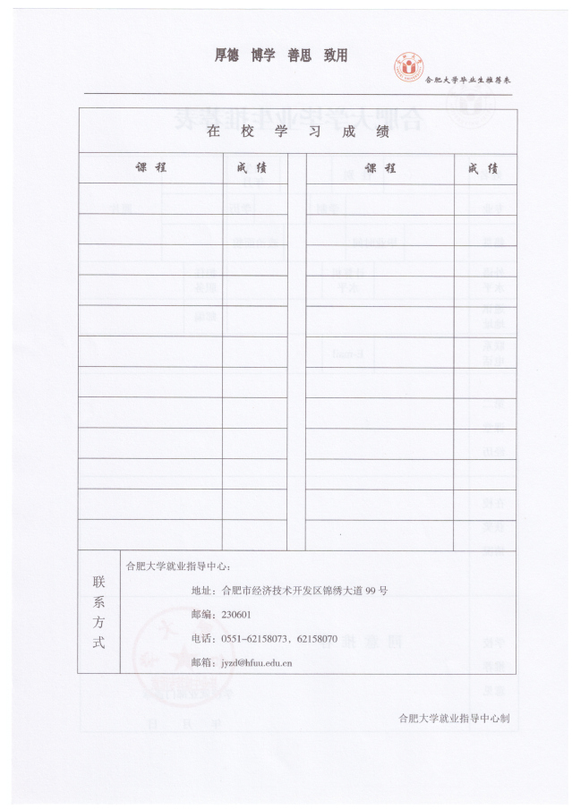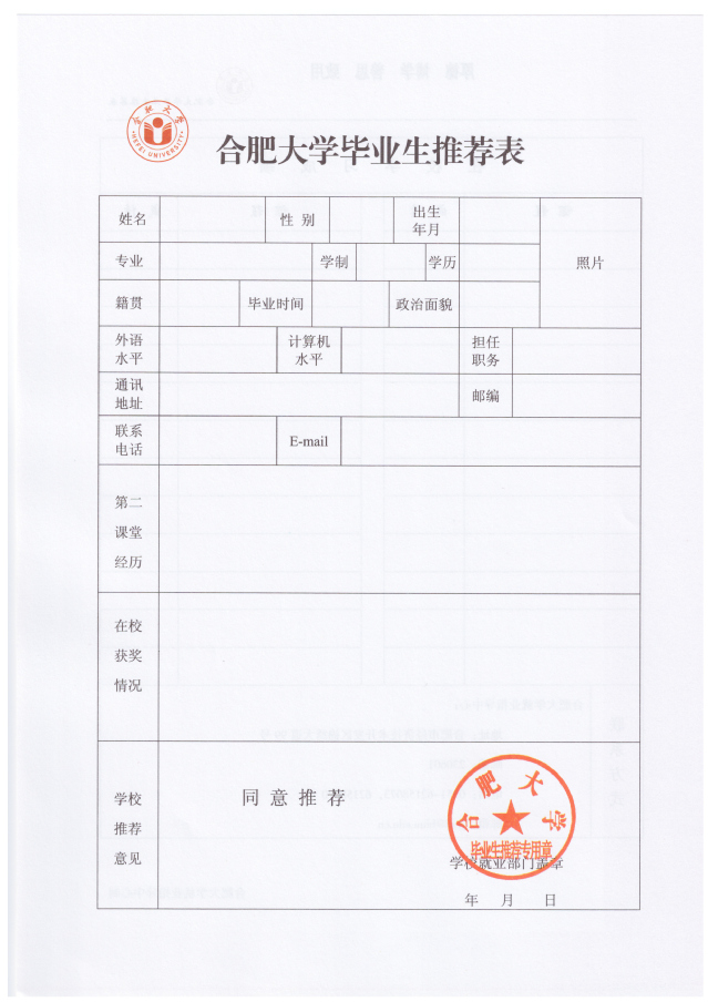 合肥大學(xué)畢業(yè)生推薦表