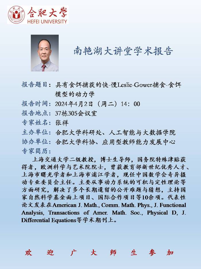 【南艷湖大講堂】具有食餌捕獲的快-慢Leslie-Gower捕食-食餌模型的動力學