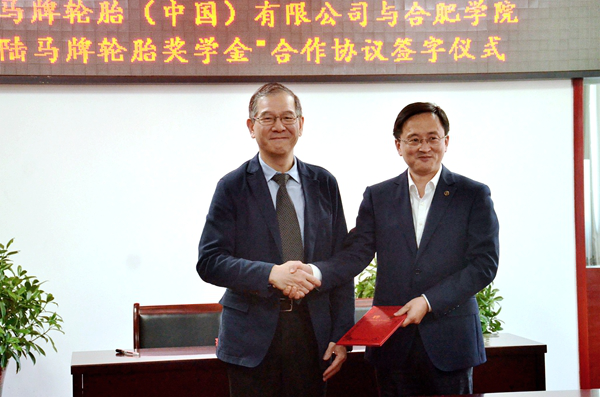 On April 9th, the Continental (China) Co., Ltd signs “Continental Tires Scholarship Agreement” with HFU. Mr. Wang Xiaoji, the general manager of the Continental Co., Ltd (Hefei) and Mr. Wang qidong, president of HFU attend the signing ceremony.