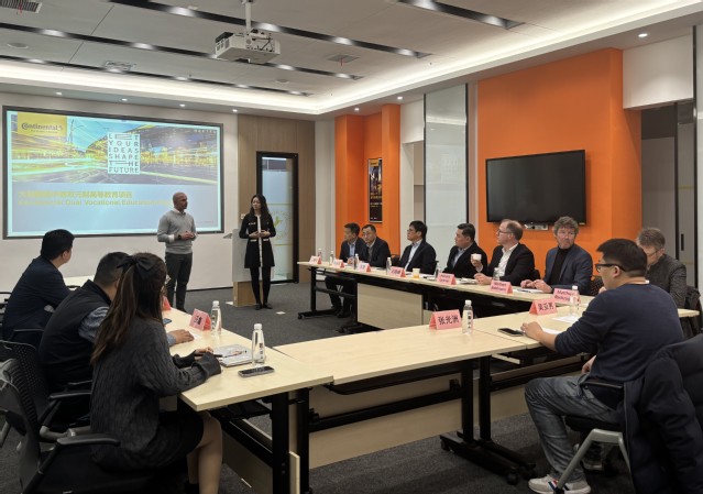 在座談環節,王曉峰與財務總監周淵、人力資源總監亞歷克西斯·格羅斯Alexis Gross就深入推進大陸班共建、校企資源對接展開交流。王曉峰指出,合肥大學將持續優化專業鏈對接產業鏈機制,總結十年校企共建大陸班的經驗,進一步增強雙元制合作培養高水平應用型人才的優勢,破解校企合作人才培養的難點和痛點。周淵重點介紹了大陸集團扎根市場、服務市場本土化戰略、四期工廠智能化產線布局等規劃。亞歷克西斯·格羅斯分享了企業人才評價體系,強調大陸班學生在跨文化溝通、工程實踐能力等方面的優勢。