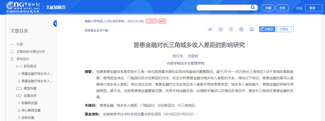 近日,我院21級大數據與科技金融方向碩士研究生劉亞嬌與導師合作在CSSCI刊物《海南大學學報》(人文社會科學版)2023年04期發表了最新研究成果《普惠金融對長三角城鄉收入差距的影響研究》。