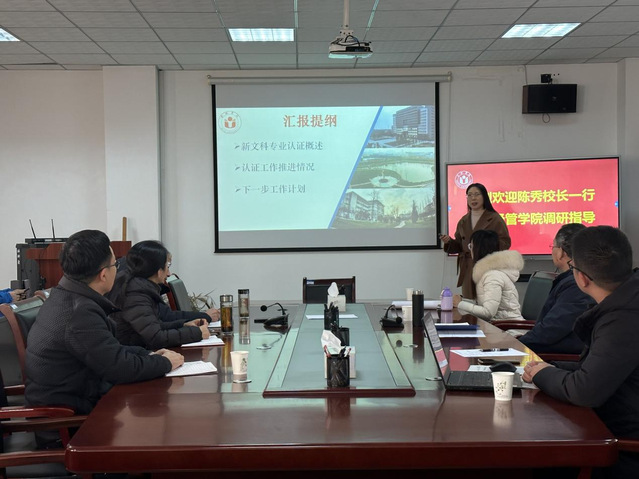 為切實加強學校新文科專業內涵建設,提升專業建設水平,推動學校教育教學高質量發展,2023年12月20日,副校長陳秀前往經濟與管理學院調研物流管理新文科教育專業認證推進工作,教學質量監控與評估處處長儲忠、副處長王玉陪同,經濟與管理學院陳江華院長、倪澤強書記、于娜副院長,物流管理專業負責人王曉艷教授和專業骨干教師參加會議,會議由陳江華院長主持。