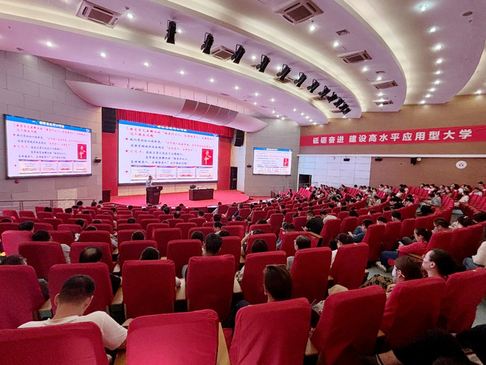 為學習貫徹黨的二十屆三中全會精神,落實立德樹人根本任務,提升教師課程思政建設水平,9月26日,我校特邀南京信息工程大學原黨委副書記、副校長(正校級)王堯作課程思政專題培訓會。會議由校黨委委員、教務處處長王曉峰主持,學校200余名教師參會學習。