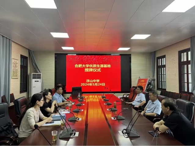 為吸引更多優質生源報考合肥大學,5月24日,教育學院副院長劉紅(主持工作)、校學生處副處長陶龍澤、教育學院副院長劉菂斐、學前教育專業肖冉老師一行四人赴安慶樅陽縣浮山中學新建優質生源基地。