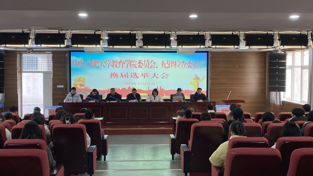 12月26日上午,中共合肥大學教育學院委員會“兩委”換屆選舉黨員大會在一期6號樓學術報告廳召開。學院領導班子、黨委委員、全體師生黨員出席會議。會議由院黨委書記劉良宏主持。