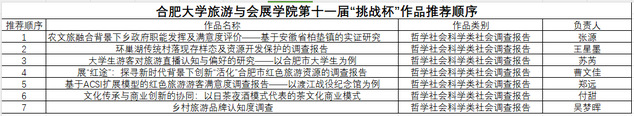 旅游與會展學院“挑戰杯” 大學生課外學術科技作品推薦順序公示