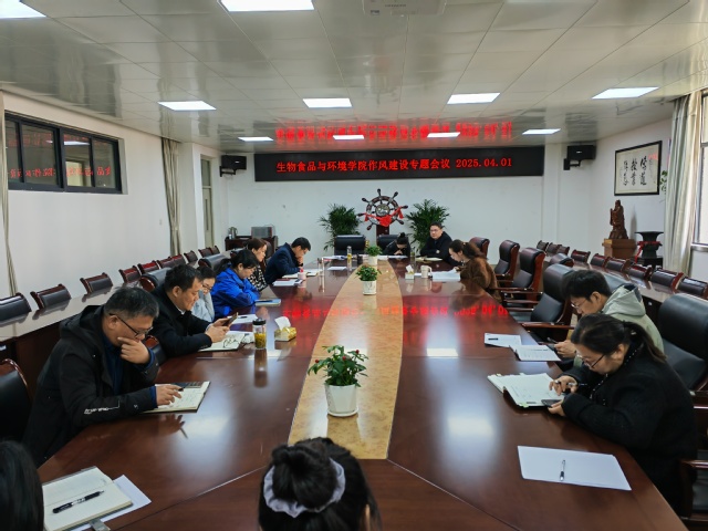 為縱深推進全面從嚴治黨,切實將作風建設融入學院發(fā)展全局,2025年4與1日,生物食品與環(huán)境學院召開作風建設工作專題會議,全體院領導、黨委委員、各支部書記參加會議,會議由學院黨委副書記晉松主持。
