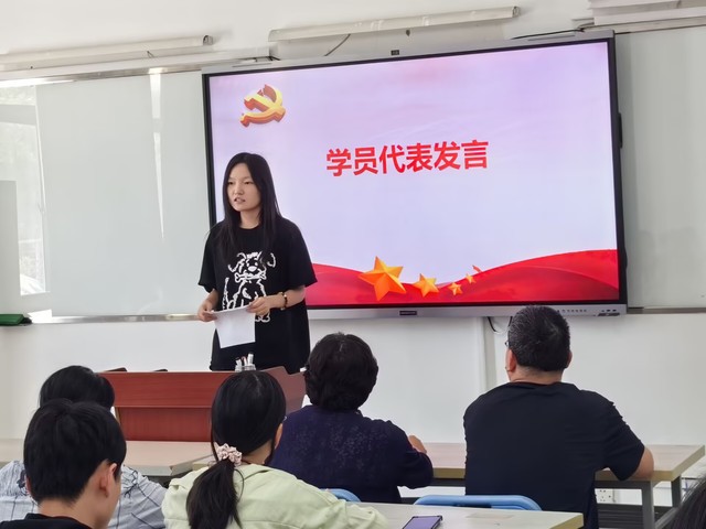 典禮伊始,全體人員肅然起立,奏唱中華人民共和國國歌。激昂的旋律回蕩在教室中,激勵著每一位學員肩負起時代賦予的責任與使命,為國家的繁榮富強不懈奮斗,也為接下來的學習之旅奠定了堅實的思想基礎。隨后,阮班鋒上臺發表講話。他強調了入黨分子培訓班的重要意義,指出此次培訓不僅是學員們提升政治理論素養的契機,更是他們向黨組織靠攏、接受黨性教育的關鍵一步。他希望學員們能夠珍惜此次學習機會,以飽滿的熱情和嚴謹的態度投入到培訓中,努力提升自身素質,爭取早日成為一名光榮的中國共產黨黨員。學員代表隨后上臺發言,表達了全體學員對此次培訓的期待與決心。學員代表表示,大家將嚴格遵守培訓紀律,認真學習黨的理論知識,積極參與實踐活動,不斷提升自己的黨性修養和政治覺悟,以實際行動踐行入黨初心。趙暮雨在典禮上介紹了本次培訓的學習內容安排。她指出,培訓內容將分為理論學習、實踐鍛煉和自主學習三部分。理論學習將系統講解黨的基本理論、基本路線和基本方略;實踐鍛煉將通過實地參觀、志愿服務等形式,讓學員們在實踐中感悟黨的宗旨;自主學習則鼓勵學員們利用課余時間深入研讀黨的經典著作,拓寬知識面,提升綜合素養。