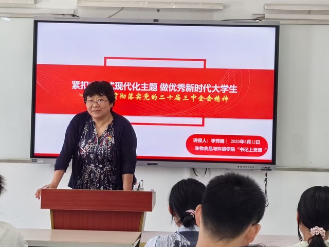 20255121250分,生物食品與環境學院分黨校第24期入黨積極分子培訓班第一課在生-214教室開展,由黨委書記李秀娟主講。