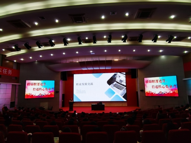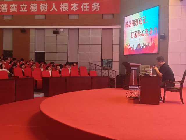 2025年5月13日晚6時30分,生物食品與環境學院“破局職涯迷茫,打造核心競爭力”主題講座于圖書館A報告廳舉行?;顒佑蓪W院黨委副書記晉松、學生工作辦公室主任陳玲主持,特邀安徽安科生物工程(集團)股份有限公司人力資源經理王龍擔任主講,為全體大三學生及生物制藥專業新生帶來一場職業發展導航盛宴,現場反響熱烈。