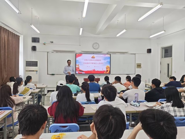 楊紅從黨性教育、黨性修養與黨性鍛煉的重要性切入,強調提升黨員能力素質的需要。通過講述先進黨員事跡,引導學生深刻理解黨的初心使命,讓學生明白黨性修養需要長期學習與實踐中培育和提升。楊紅著重強調,端正的入黨動機是入黨的首要條件。他指出,入黨不應出于功利目的,而是源于對共產主義事業的堅定信仰和為人民服務的熱忱,只有端正入黨動機,才能產生正確的爭取入黨的行動。正確的動機,是正確行動的推動力量。楊紅列舉了現實中部分學生因功利入黨導致的不良后果,讓學生明晰正確入黨動機的內涵。過硬的專業素養是入黨的必要條件,楊紅鼓勵學生努力學習科學文化知識,積極參與社會實踐,全面提升綜合素質。真抓實干、開拓進取是入黨的重要條件,他指出,黨在任何時候都要把群眾利益放在第一位,同群眾同甘共苦,保持最密切的聯系,不允許任何黨員脫離群眾,凌駕于群眾之上。黨員要時刻發揮先鋒模范作用,在日常生活中踐行黨的宗旨,以實際行動彰顯黨員先進性。