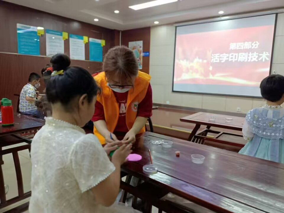 活動過程中,學生黨員志愿者通過精心準備的PPT和有關于五四運動的視頻,為小朋友們講述了五四運動的背景、具體過程以及深遠的意義。此外,支部還將中國傳統文化——活字印刷術與五四主題巧妙地結合,引導孩子們樹立正確的三觀,了解五四運動所代表的愛國、進步、民主、科學的意義。孩子們認真聽講,與志愿者們一同沉浸在先輩們的勇敢氛圍之中。