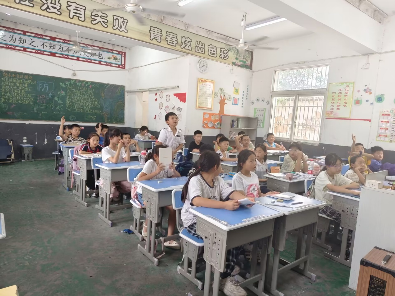 2024年7月8日上午,合肥大學“綠野振興,與潁同行”調研團走進潁上縣半崗鎮侯郢小學。為積極響應"垃圾分類,從我做起"的號召,培養學生們保護環境從自身做起的意識,由三下鄉學校組隊員為小朋友講解垃圾分類的相關知識,并通過圖片展示的形式繪聲繪色地講授垃圾分類的重要性及危害。孩子們聚精會神地聆聽,展現出對環境保護的關切。知識宣講結束后,隊員們將事先為學校同學們準備好的文具用品送到每位同學的座位上。孩子們臉上都洋溢著開心的笑容。豐富多樣化的活動不僅增強了活動的趣味性也極大賦予了活動的教育與實踐意義。