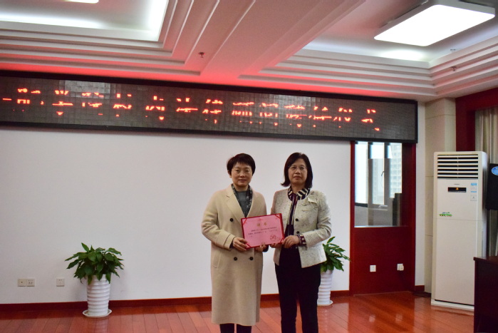 儀式上,吳春梅為陳江華、吳曉紅、江玉榮三位法律顧問頒發聘任證書。