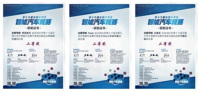 合肥學院智能車團隊于2007年10月成立,2008年首次參賽,在校領導、各部門大力支持下,在先進制造工程學院黨政領導的指導下,長期以來形成“堅持拼搏、團結奉獻”的良好氛圍,在省內和全國競賽中取得了優異成績,自參賽以來培養了獲省級以上獎勵的學生近300余人,獲省級以上獎項128項,其中獲得國家一等獎4項(其中1項為全國第二名,此為安徽賽區在全國總決賽中最好成績),二等獎14項,三等獎1項。以賽促教,該項賽事提升了我校學生動手能力和創新能力,在與國內一流高校學生的同場競技中,展示了我校學子的風采,充分體現了學校應用型辦學理念在學生工程實踐能力、創新意識、綜合素質等方面的培養成果。