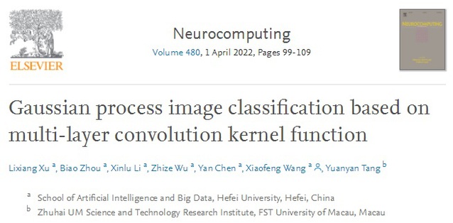 近日,我校人工智能與大數(shù)據(jù)學(xué)院視覺(jué)計(jì)算課題組2020級(jí)碩士研究生周彪同學(xué)(校內(nèi)導(dǎo)師:王曉峰、徐立祥)的研究成果《Gaussian process image classification based on multi-layer convolution kernel function》被國(guó)際期刊《Neurocomputing》在線出版。