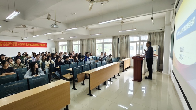 4月22日,語言文化與傳媒學院、旅游與會展學院聯合分黨校在5棟309教室舉行了入黨積極分子培訓班第二次理論授課。本次課程由合肥大學紀委副書記、紀委辦主任羅會必主講,培訓班全體學員參加。