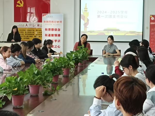首先,黨委副書記張愛萍對新來的各班團支部書記表示歡迎,接著,她對團支書的相關工作提出了具體要求,希望大家以積極的態度認真對待團委工作。會上,她不僅明確指出團支書的定位,承擔連接上級組織與團員之間的橋梁的責任,發揮著舉足輕重的作用,同時也需要組織好各項主題活動,學習黨團的先進思想,領導做好團員的思想工作,最后她點明了團支書要有團員干部的身份意識,要發揮骨干帶頭作用,要引領團員們樹立正確的世界觀,人生觀,價值觀。緊接著,組織部部長介紹了智能團建,主題團日活動,團費收繳的內容。