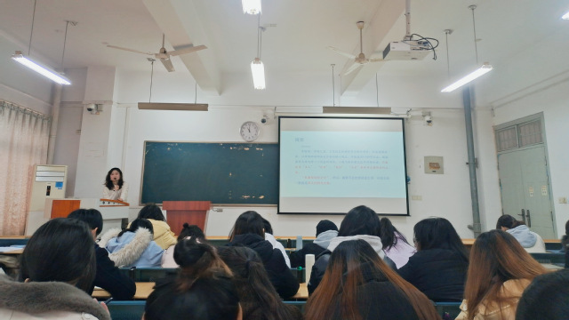 緊接著,崔璨老師從選題、開題報(bào)告和論文格式三個(gè)方面對(duì)如何進(jìn)行畢業(yè)論文的撰寫展開指導(dǎo)。選題方面,得從自己感興趣之處入手,能夠?qū)⑿☆}放大,須有可行性;開題報(bào)告得有研究意義、基本內(nèi)容、重難點(diǎn)以及提綱四個(gè)方面的內(nèi)容;格式須得完整規(guī)范,嚴(yán)格按照論文寫作的標(biāo)準(zhǔn)來執(zhí)行。