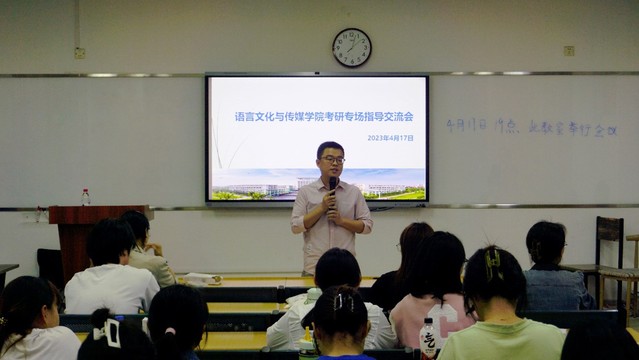 4月17日晚七點,語言文化與傳媒學院“啟航青春”就業促進主題活動之考研專場指導會在一區善思樓C座106教室召開,語言文化與傳媒學院團委負責人劉政主持,我院五十余名學生報名參加。本次指導會榮幸地邀請到了北京啟航教育集團安徽分校校長胡守信作為主講人,向同學們指導講解考研相關知識內容。