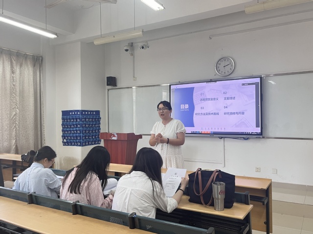 本次預開題共分為四組,學生到論文指導老師所在小組參加開題。在答辯現場,每位學生依次上臺,圍繞自己的畢業論文開題進行了選題匯報,內容主要涵蓋研究背景、研究目的、研究內容、研究方法、創新點等方面,導師及論文小組老師認真聽取了學生的陳述, 針對開題報告中存在的問題,提出了具體的修改意見和建議。答辯過程中,老師們對開題報告中存在的爭議點進行提問,學生們則認真思考,準確回答。通過這一環節,不僅檢驗了學生對論文選題的掌握程度,也鍛煉了她們的應變能力和表達能力。預開題答辯現場氛圍緊張而有序,充分展現了文傳學院嚴謹治學的精神風貌。