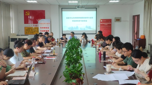 8月30日上午,語言文化與傳媒學院在五棟二樓會議室舉行了全院教師大會暨期初師德師風學習教育會,學院領導班子成員及全體教職工參加會議。